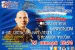 25 января в подмосковной Коломне, в Культурном центре «Дом Озерова», состоится творческий вечер лауреата многочисленных конкурсов и фестивалей военно-патриотической песни, активиста регионального отделения «ОФИЦЕРОВ РОССИИ» в Московской области (Коломенское отделение), кавалера ордена Мужества Константина Карачевцева «А не спеть ли нам песен о Великой России…»