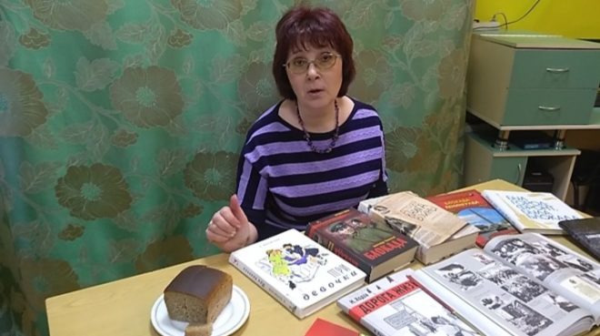 Руководитель Центра детского и семейного чтения Ольга Солдатова сделала обзор литературы на тему о блокадном Ленинграде, о том, как помогал выжить ленинградцам крошечный кусок блокадного хлеба.