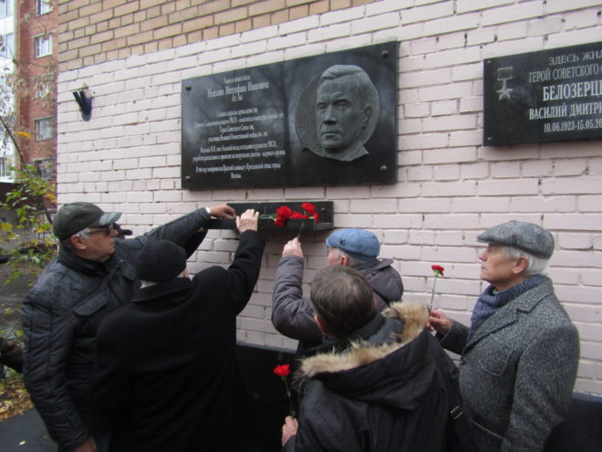Участники акции почтили память погибших испытателей минутой молчания и возложили цветы к памятной доске и памятнику маршалу Митрофану Неделину.